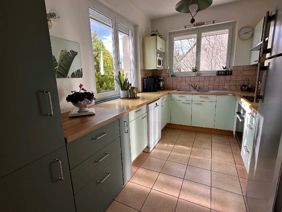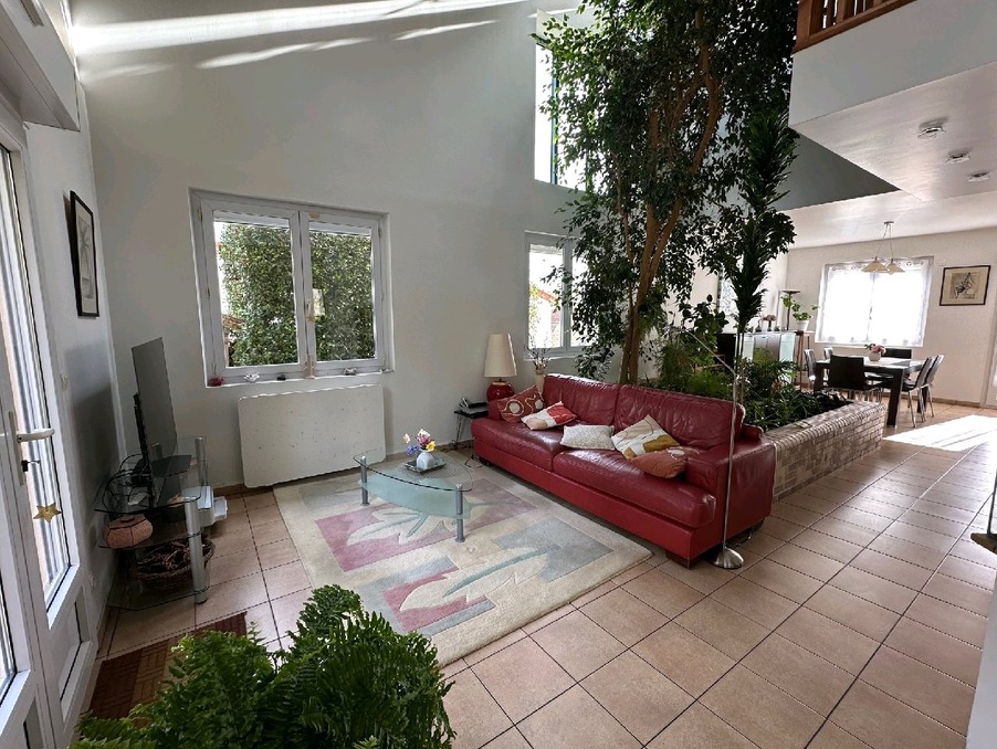 Découvrez cette belle maison d'architecte dune superficie denviron 156 m² (138 m² habitable) sur un terrain de 1469 m². Elle offre: Une entrée, une cuisine équipée, un séjour double et un salon avec cheminée centrale le tout donnant sur une terrasse, une salle deau avec wc.